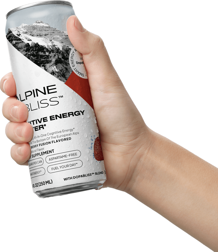 The world's first natural dopamine support energy drink that gives you a clean, long-lasting energy and focus increase with our proprietary DopaBliss™ blend. Contains key dopamine precursors to help improve your motivation, focus, attention span and performance. With ultra-pure mountain water sourced directly from the European Alps and a delicious Sparkling Berry Fusion flavor. Winner of the 2024 Energy Drinks Excellence Awards. Only 25 calories and 5g of sugar per can. Every purchase is protected by a 30-day money-back guarantee.