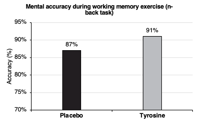 A placebo-controlled study led on 22 patients has shown that tyrosine significantly improved working memory and cognitive flexibility, enabling participants to perform better during cognitive performance tests. Studies have also shown that L-Tyrosine can increase “endurance energy”: it may help you exercise for longer without getting tired